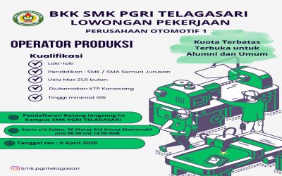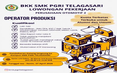 SMK PGRI Telagasari melalui Bursa Kerja Khusus (BKK) kembali membuka kesempatan kerja bagi alumni dan masyarakat umum untuk bergabung di perusahaan otomotif terkemuk